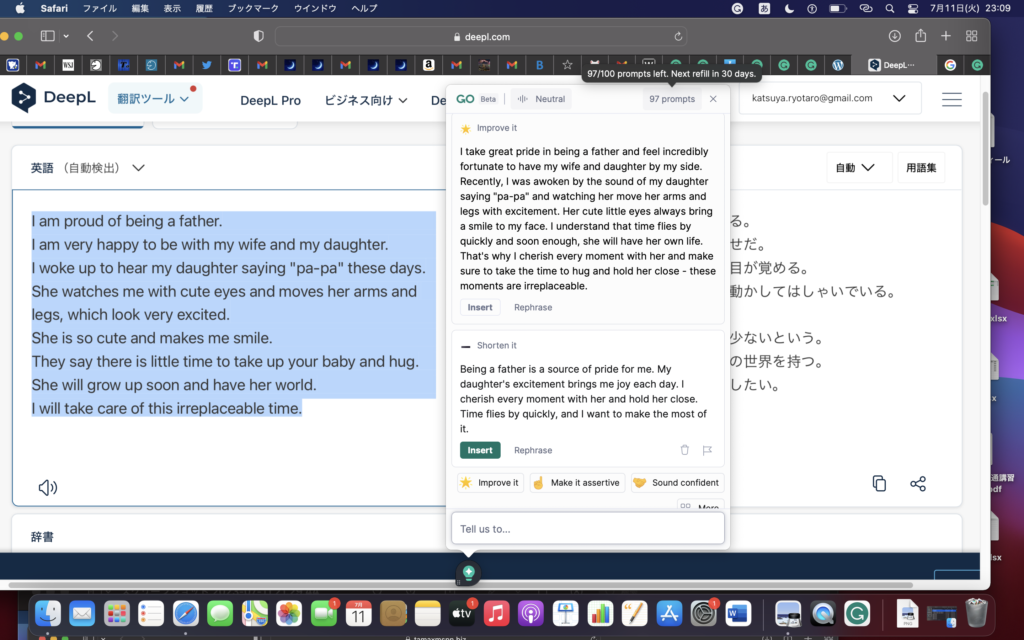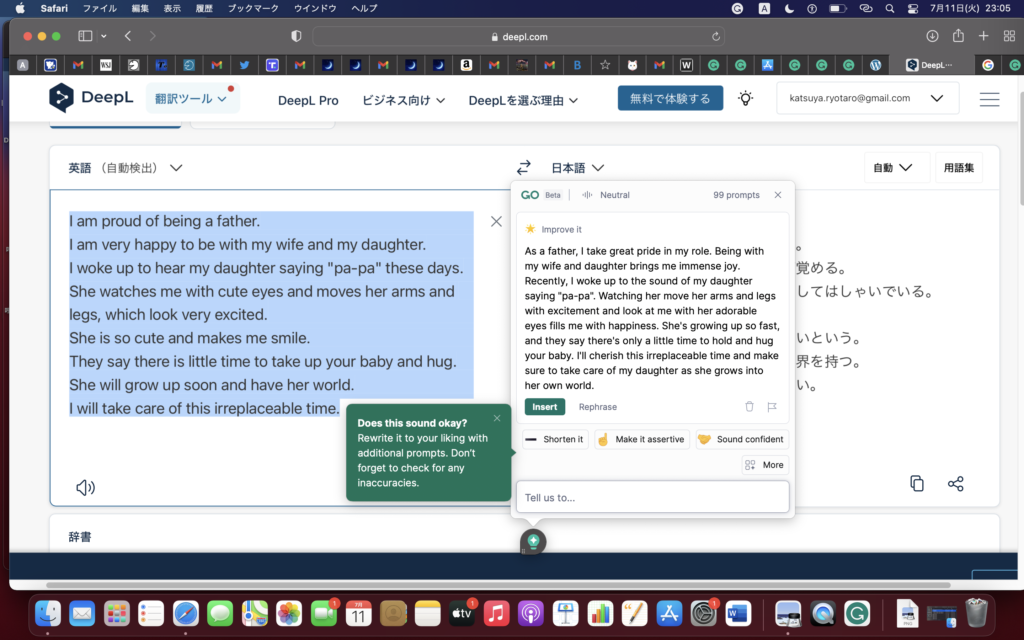 Grammarly無料版でもけっこう立派な文が書けるね。すごい。