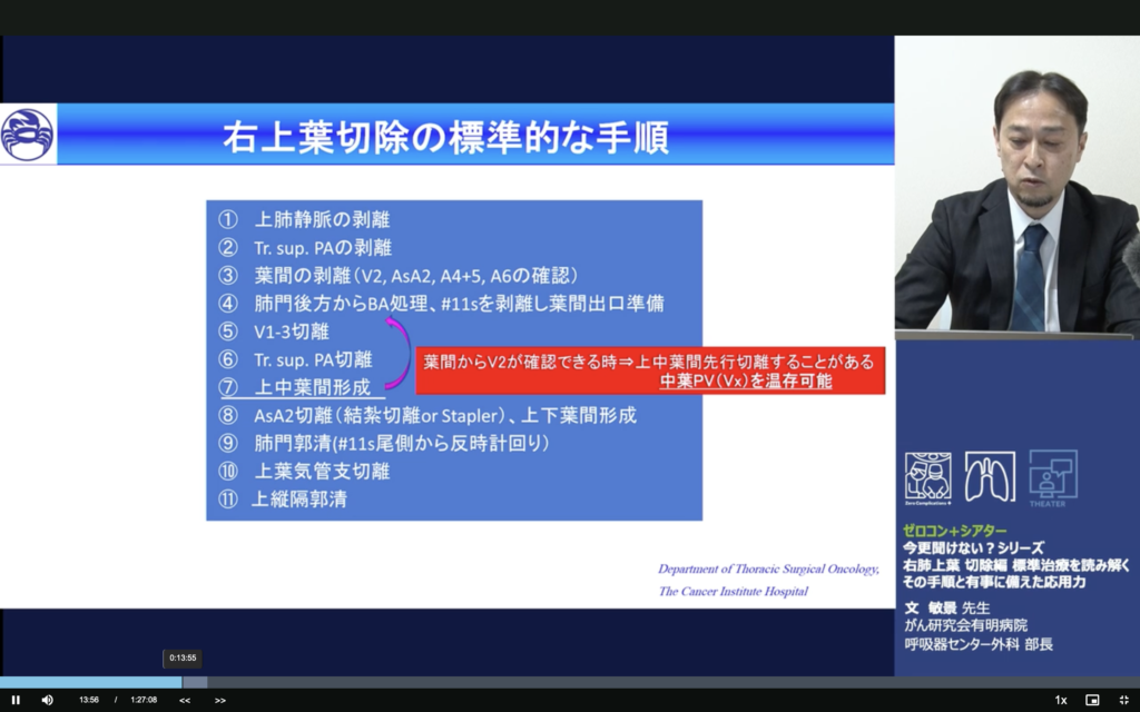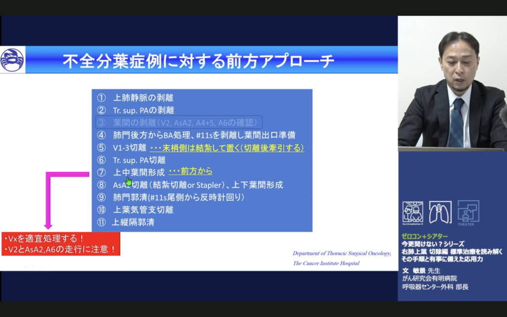 葉間からV2が確認できるときは、上中葉間を先行切離できる。これのメリットは、中葉PV(Vx)を温存可能なこと。←理解不十分。(だった)
