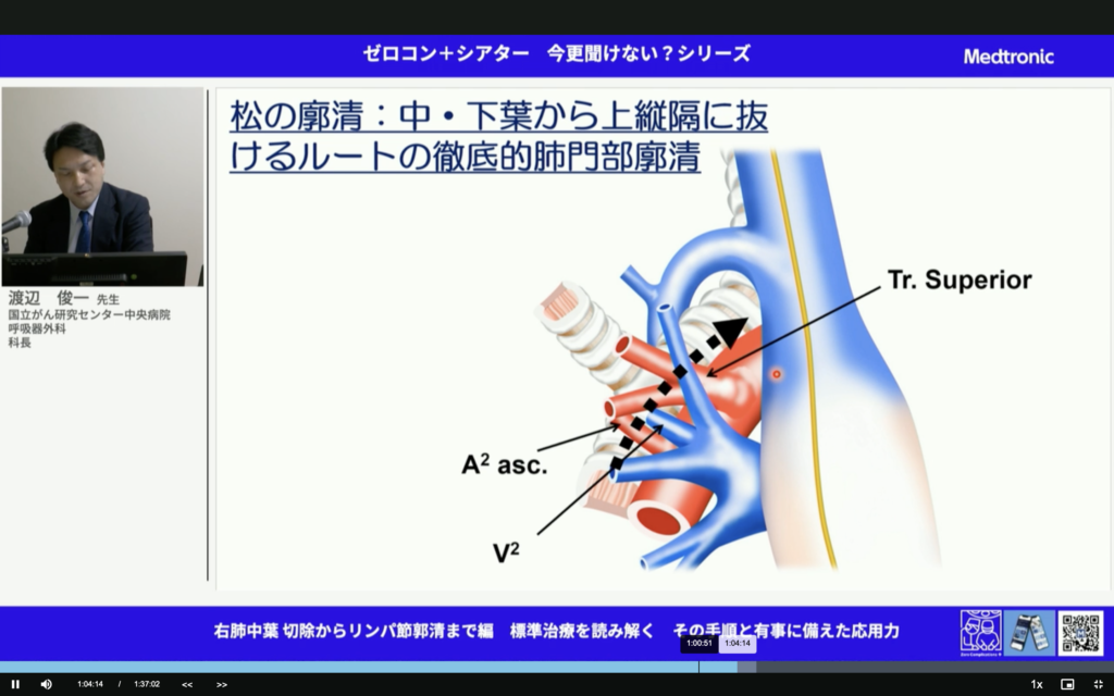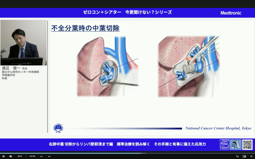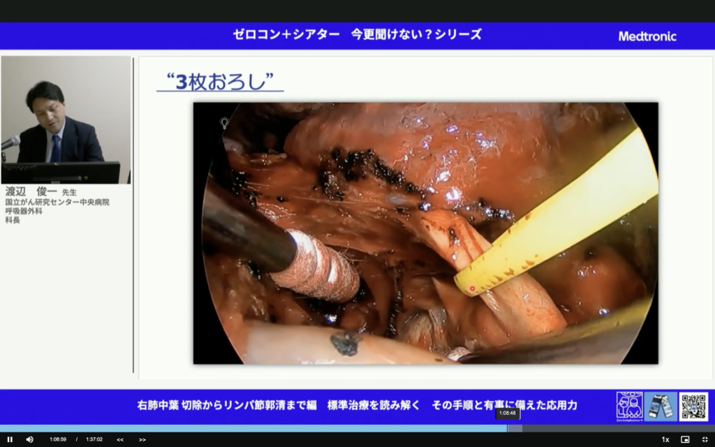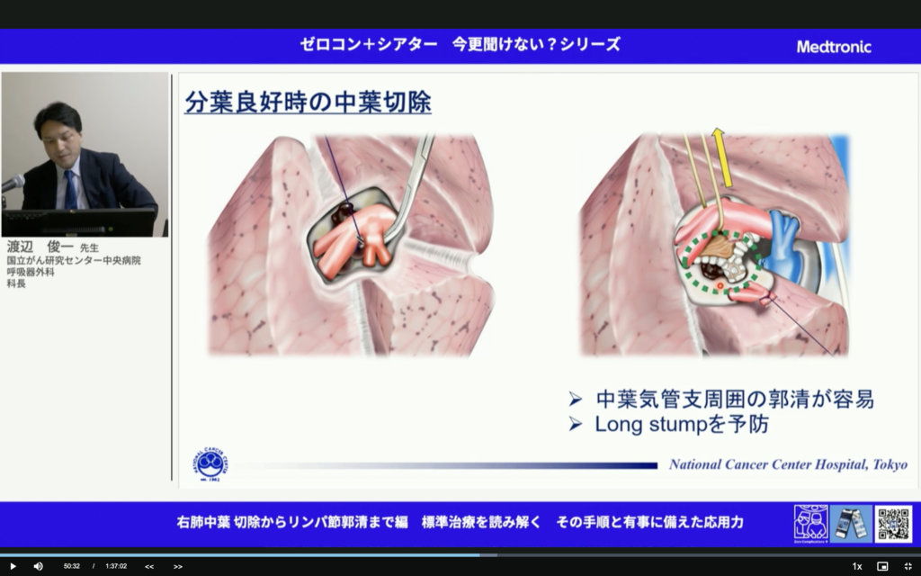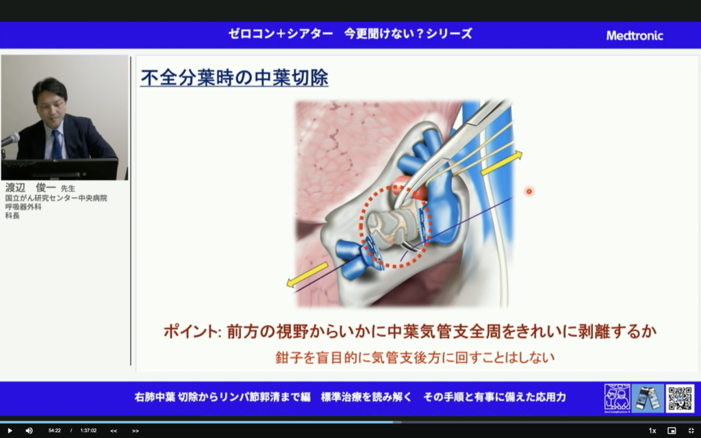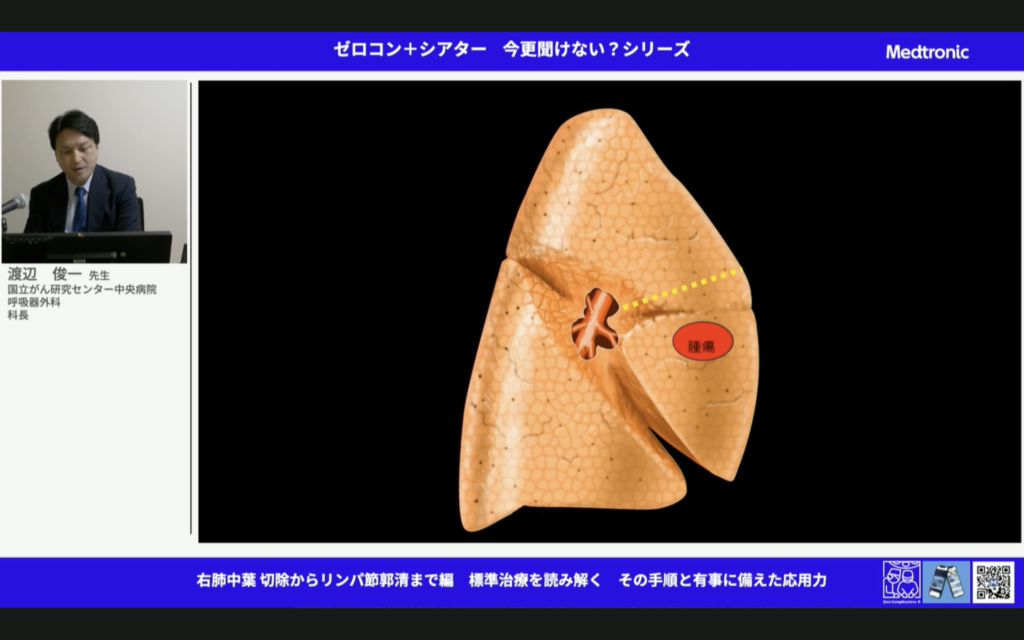 すごいことだ。中葉肺癌って予後悪いんだよね。しっかりマージンとって、しっかり郭清して。