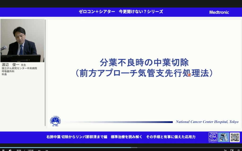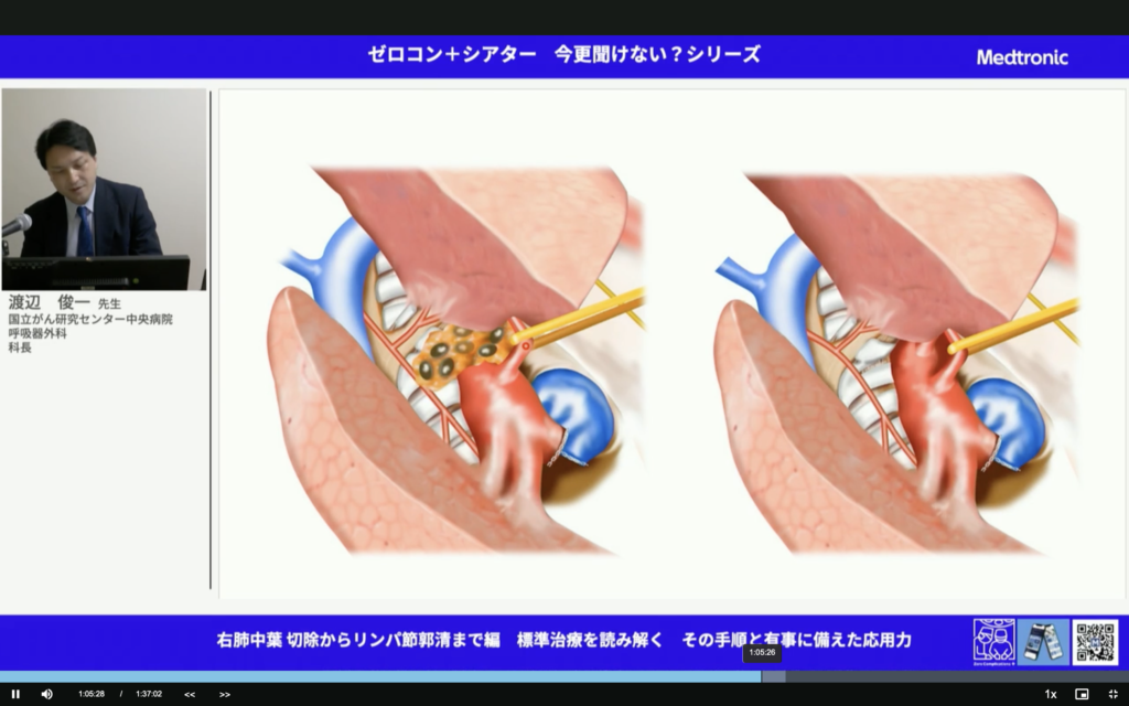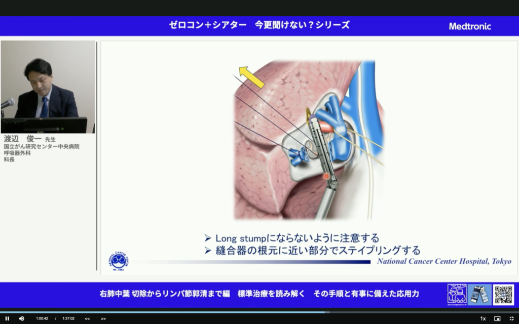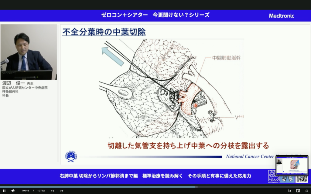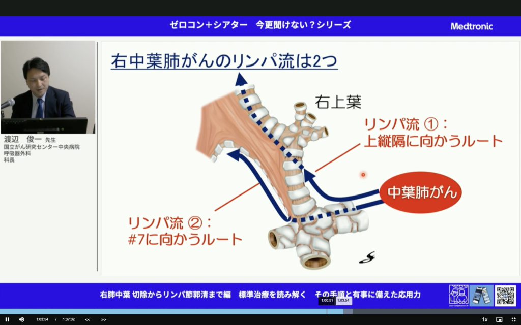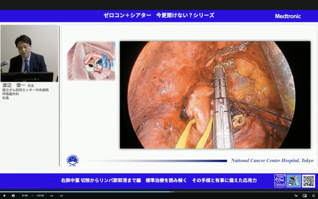 すごいことだ。中葉肺癌って予後悪いんだよね。しっかりマージンとって、しっかり郭清して。