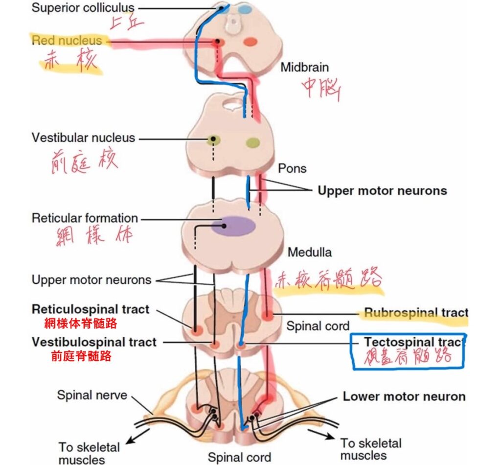 普通の錐体路とかどうなってるんだっけ。錐体路。(=皮質脊髄路+延髄脊髄路)