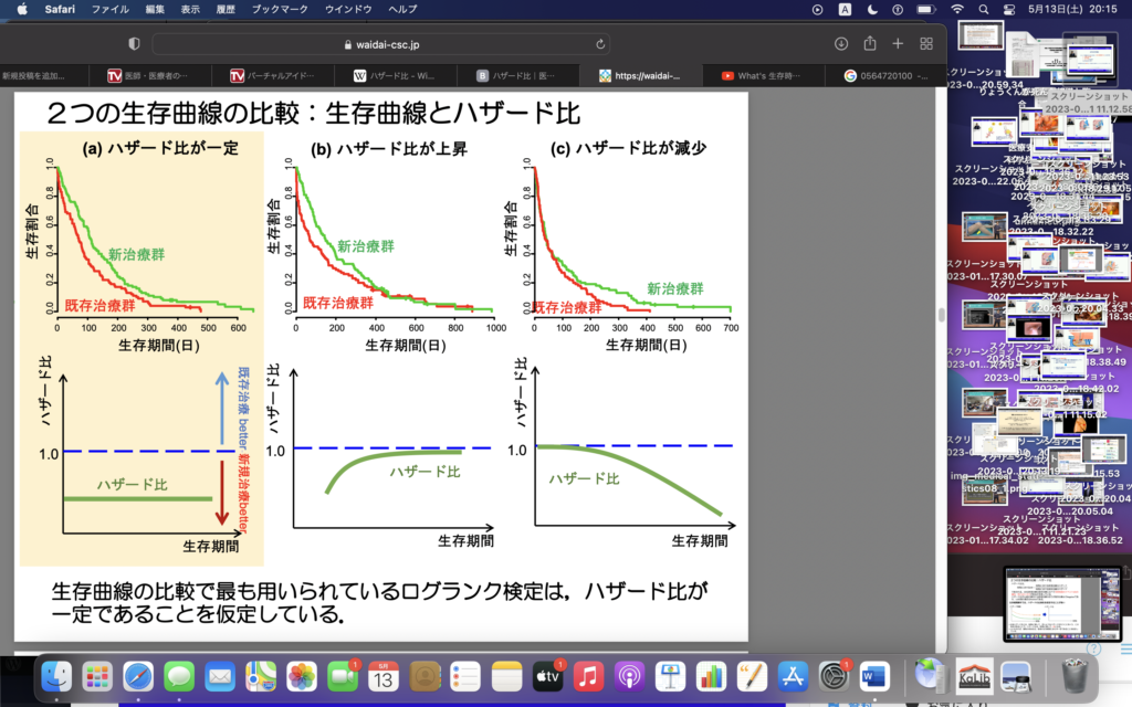 ・比例ハザードモデルがわからないのか?→比例ハザードというすんごい特殊な世界(状況?)をベースにしてる ハザード比を、時間によらず一定と仮定してモデルの式をつくっている。モデルの式において、独立変数は予後因子になることが多く、ダミー変数を使っている。