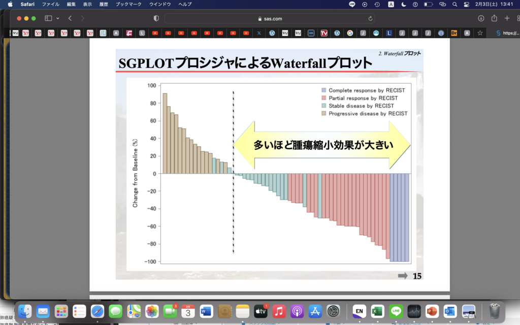 医療 学会・論文 waterfall plot 2024年2月3日 2024年2月3日 Toshi Facebook Twitter Google+ はてブ Pocket Feedly waterfall plot 一人一人の患者の腫瘍縮小効果を書き表すグラフ。 奏功割合のグラフもあるが、こちらはわかりやすい。 Facebook Twitter Google+ はてブ Pocket Feedly
