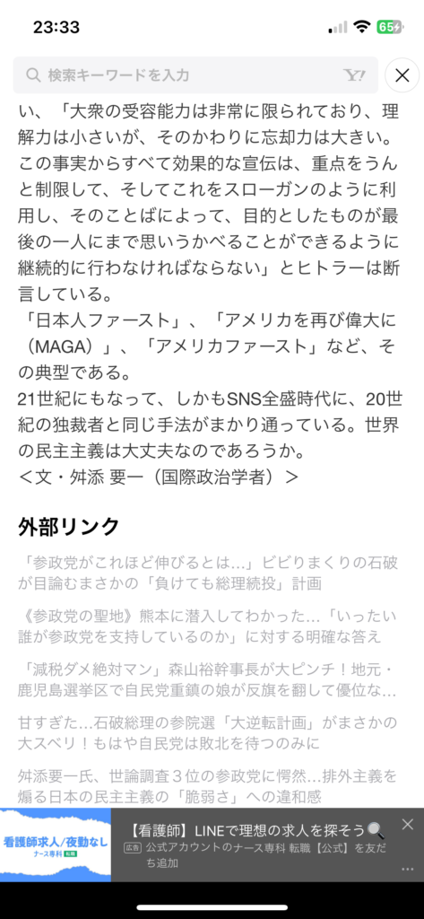 社会・国際政治 参政党がナチスの再来とか言ってる奴、ちゃんちゃらおかしいよ=おい舛添、聞いてるか。こんなやつが国際政治学者とか、笑わせるわwww 2025年7月16日 2025年7月18日 Toshi Facebook Twitter Google+ はてブ Pocket Feedly 反論1)舛添理論では、演説上手い奴は皆ヒトラー 反論2)産めよ増やせよなんて当たり前だろ?だって人口減少してるんだもん。 反論3)ヨーロッパの状況とかアメリカの状況と全く同じなんだよ、別に日本が特殊ってわけじゃない。反グローバリズムの流れ。 神谷さんは愛国者だよ。だって、わたし7年前の冬に伊勢神宮の五十鈴川で、神谷さんと一緒に褌一丁で禊やったからね。 1)舛添の理論だと、演説上手い奴は皆ヒトラー笑 Facebook Twitter Google+ はてブ Pocket Feedly