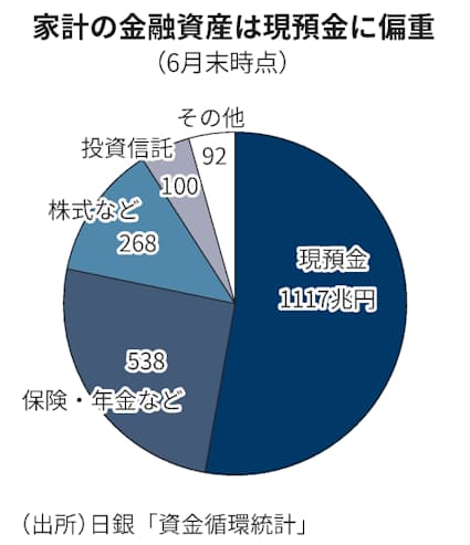 日銀の資金循環統計によると、6月末時点の家計の金融資産2115兆円のうち、現預金が1117兆円と、過半を占める状態が続いている。ただ税制面の優遇措置が大幅に拡充された新NISAが始まれば、家計の貯蓄から投資へのムードを高める転機になる。