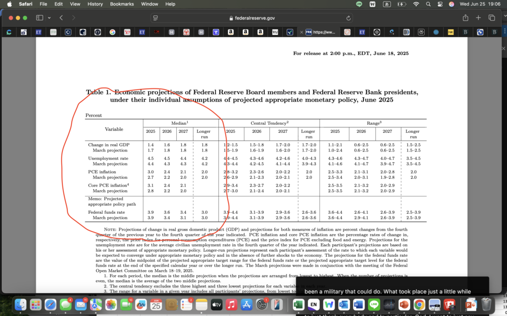 (1とりあえず利下げはできそうだ。)(追記:2025/06/25 →と思ったら、パウエルは様子見モードだと。関税の影響はこれから出てくると思っている。出てこないなら何かを学ぶと。)まあトランプのいうことは聞きたくないってことだよね。それは分かるよ。あとやっぱりインフレ警戒している