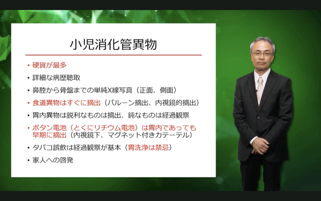 ボタン電池は必ずとれ!タバコは経過観察…胃洗浄ダメ。