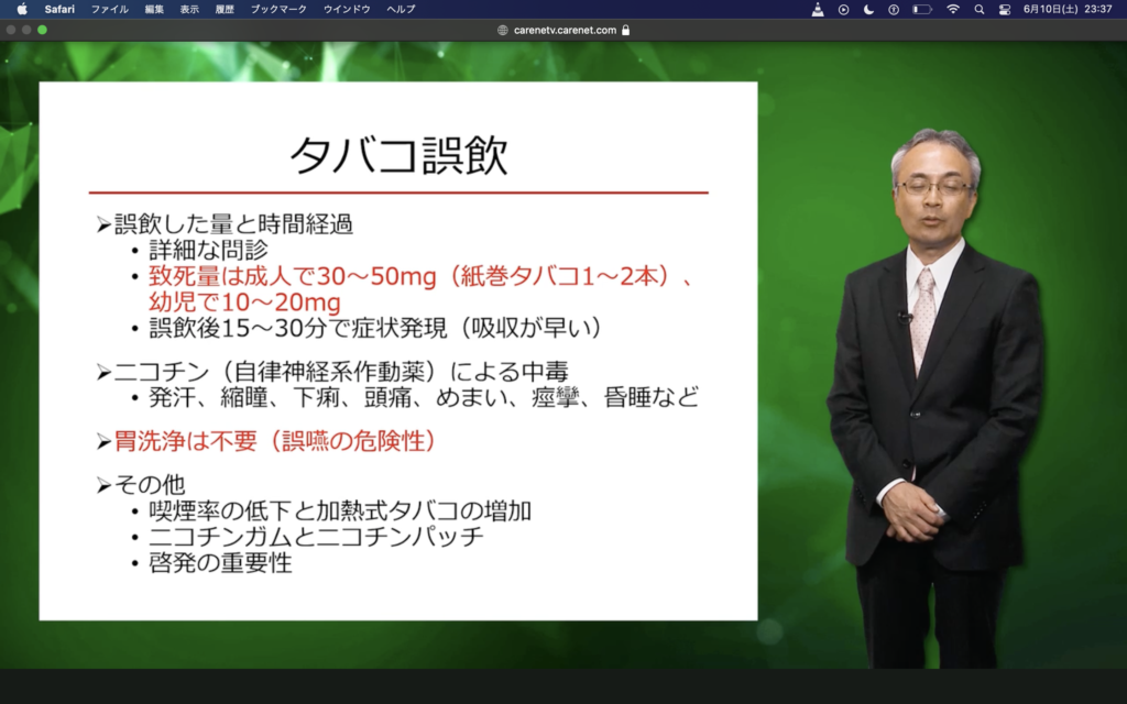 ニコチン中毒ニコチンガム、ニコチンパッチの誤飲も危ないね。