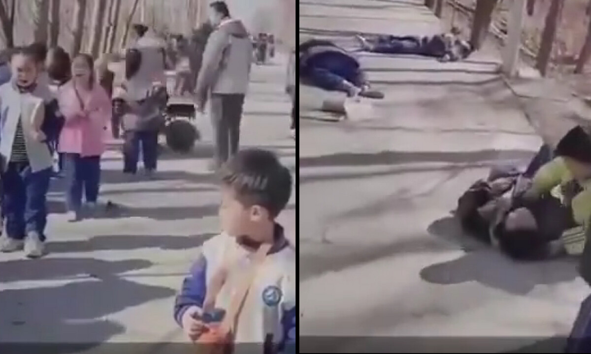 3月1日午後1時40分頃(現地時間)、山東省德州市にある小学校の校門近くで、自動車が猛スピードで生徒の群れに突っ込む事件が起きた。現場写真。(SNS投稿動画よりスクリーンショット/合成)李凌, 鳥飼聡 2024/03/06 更新: 2024/03/06